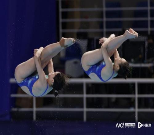 全红婵/王伟莹在比赛中。